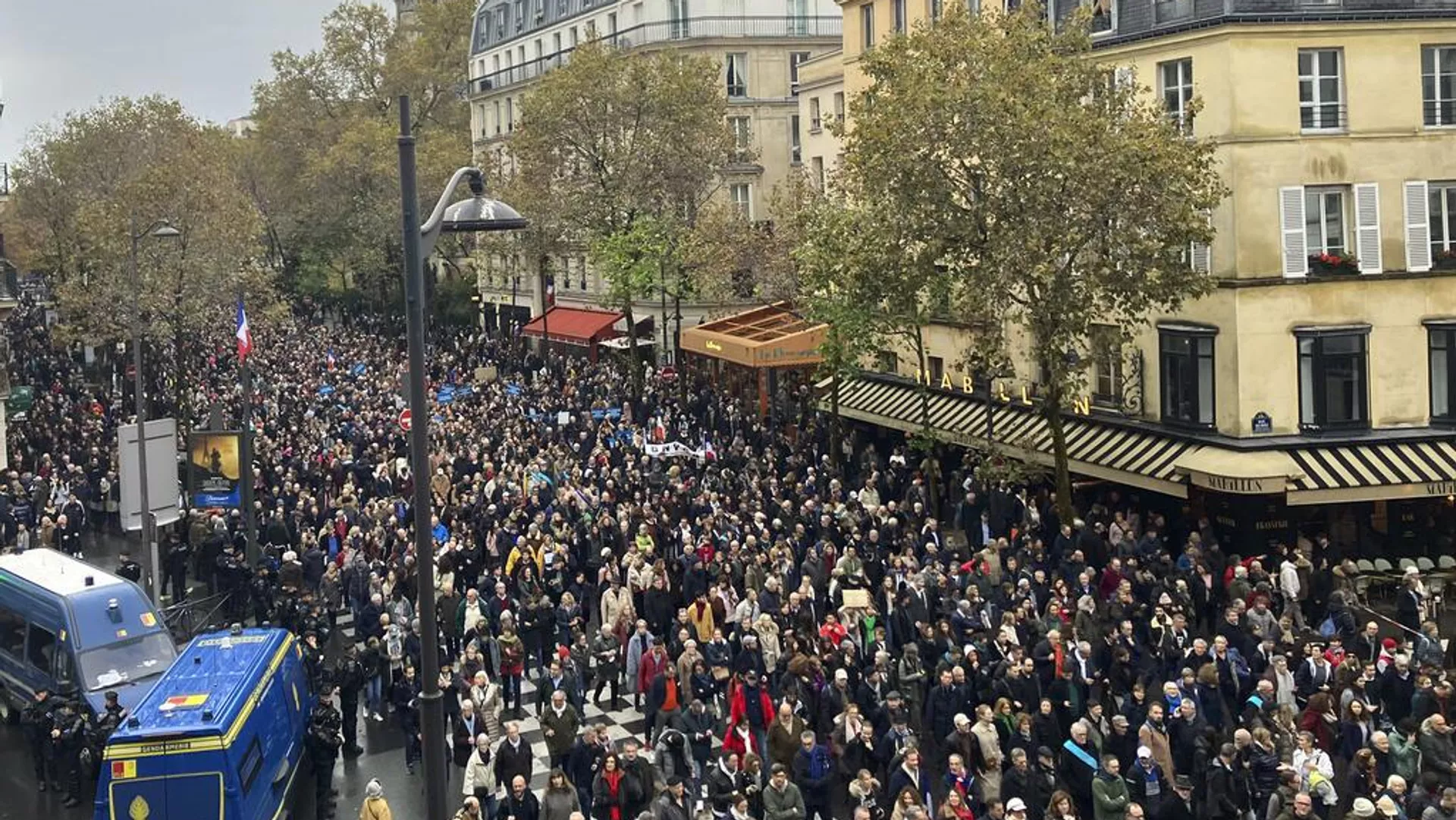 Cientos de miles de personas marcharon este 12 de noviembre en París en contra del antisemitismo en momentos en que los actos de odio contra la población judía de Francia se han disparado en las últimas semanas, de acuerdo con las autoridades del país europeo.