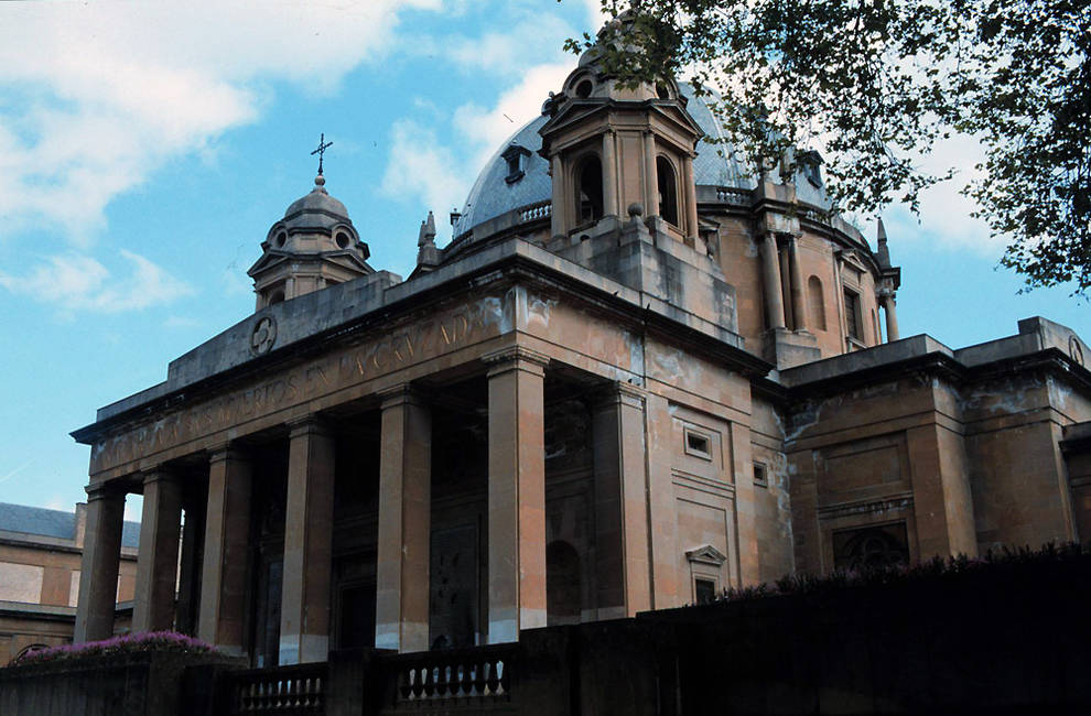 Las iniciativas para construir un altar de los muertos datan de 1936, a cargo del sacerdote falangista Fermín Yzurdiaga. A continuación, el Ayuntamiento aprueba dedicar sendas calles a Franco y Mola, así como erigir un monumento. Es en 1940 cuando se concreta el proyecto solicitado por Diputación al Colegio de Arquitectos Vasco-Navarro, que se erigiría al final de la Avd.Carlos III, con cúpula central, grandiosa, una cripta en cuyo centro situarían a Mola, rodeado de cinco voluntarios y tras el altar de la capilla, a Sanjurjo. Dos cuerpos laterales, servirían de Museo de guerra. Los autores fueron los arquitectos Victor Eusa (gran artífice junto a Mola de las políticas criminales de la Junta central Carlista y la Comunión Tradicionalista) y José Yárnoz, miembro de la burguesía navarra. Fué visitado por Franco en 1952, y posteriormente se realizaron en la cúpula los frescos de Stolz Viciano, de alto valor expresivo (pues se equiparan la Reconquista, las misiones cristianas, la Guerra de la Convención, las carlistas y la sublevación de 1936), las lápidas con los muertos del bando franquista y el traslado de los restos a la cripta, en 1961.