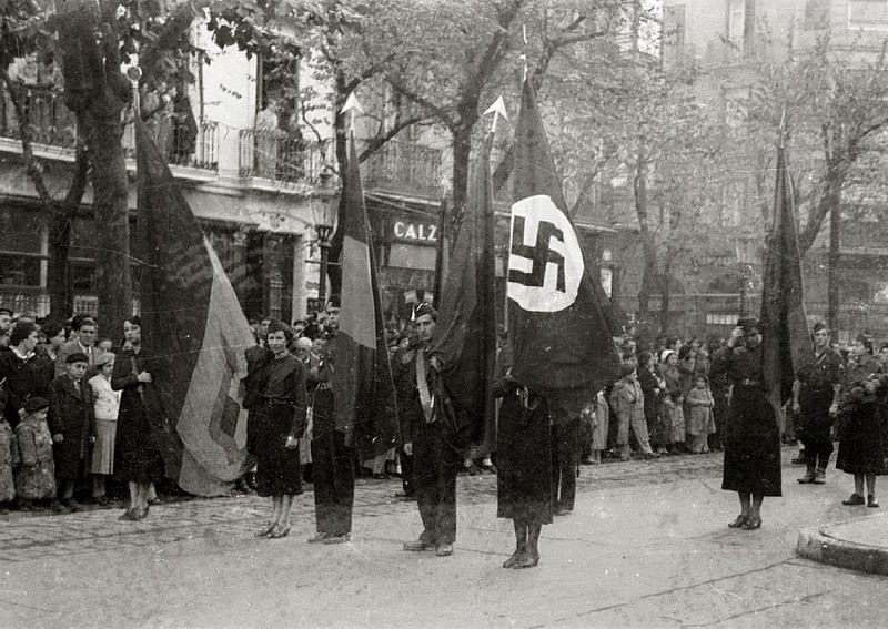 Hitler, que participó junto a Rudolf Hess y Hermann Göring en las reuniones con los enviados de Franco al Tercer Reich, se interesó desde el primer momento por la evolución de la guerra y prometió un amplio apoyo militar, que no tardó en llegar a la península. 5 La ayuda alemana estuvo centrada especialmente en el apoyo aéreo, sirviendo algunas de sus intervenciones como entrenamiento para lo que después serían las campañas de Polonia y Francia. 6 Como la Armada española había permanecido fiel a la República y controlaba buena parte de las comunicaciones marítimas, el transporte aéreo proporcionado por la aviación alemana, en lo que sería el primer puente aéreo de la historia, fue decisivo para hacer llegar a la península las tropas desde Marruecos y evitar que la sublevación fracasase. La aviación italiana también fue importante para escoltar convoyes marítimos en el estrecho de Gibraltar, ya fueran legionarios y regulares o numeroso armamento. A diferencia de los alemanes, tropas italianas, supuestamente voluntarias, participaron en la contienda en diferentes puntos de la península. 7