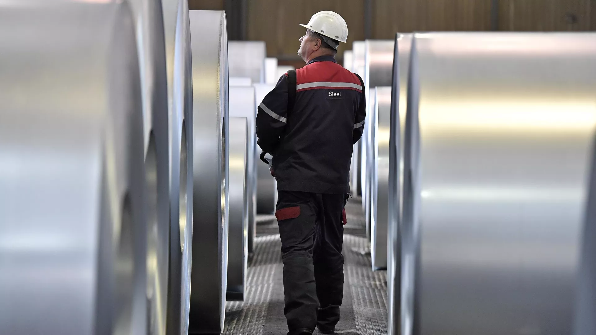 Un obrero inspecciona las bobinas de acero en una planta siderúrgica alemana - Sputnik Mundo, 1920, 12.02.2025