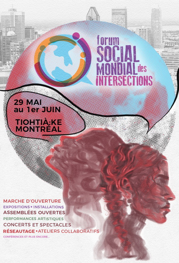 El FSMI cuenta con el apoyo de unas 400 organizaciones muy diversas –desde Organismos no Gubernamentales Internacionales hasta asociaciones locales de diversos continentes– y se realizará entre el 29 de mayo y el 1 de junio. Su escenario central es Tiohtià:ke, apelación indígena de la ciudad de Montreal, y concentrará durante esos cuatro días decenas de actividades conectadas con otras promovidas en diferentes lugares del planeta. Un ejemplo concreto de esta tela de araña global en construcción será el Agora, o “Kiosko-Feria” de las intersecciones del domingo 1 de junio, que tendrá como epicentro el parque del populoso barrio de Saint-Michel. Desde allí los participantes al foro interactuarán a través de conexiones digitales con grupos que se reunirán fuera de Canadá, explica Mac Lorin (https://intersectionsglobal.net/).